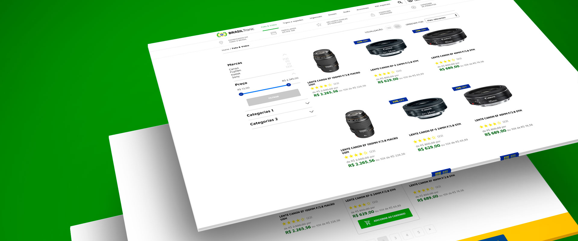 Seguindo o padrão da identidade visual, desenvolvemos a identidade web e novo layout do e-commerce.